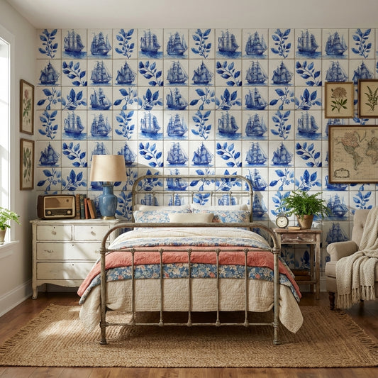 White Background Wallpaper Vintage Removable Nautical Wall Mural