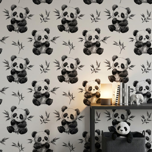 White Background Wallpaper Panda Playful Decorative Mural