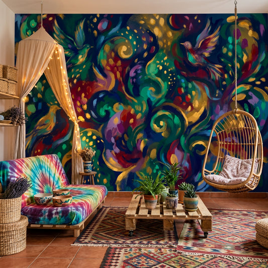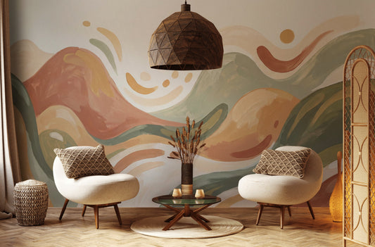 Art Wall Murals pair well with mid-century (walnut credenza + brass lamp), industrial (black steel shelving), and Scandinavian (light oak + warm white paint) because those styles give the art room to breathe. Graffiti art wall murals can clash with overly ornate traditional furniture (heavy carved cherry, busy damask fabrics) because both compete for attention. If your room leans classic, pick a quieter abstract with soft taupe and ink-black lines to bridge old and new.