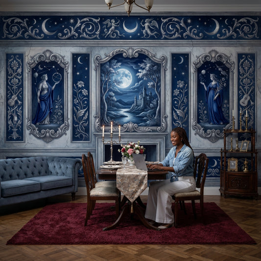 For custom art wall murals, measure the full width and height of the wall and note any obstacles (windows, doors, outlets) so the artwork can be positioned to avoid cutting through key elements like faces, tags, or a central abstract shape. Art Wall Murals shine in a living room behind a sofa or in a dining room on the main sightline wall; for a dramatic option, a ceiling application works especially well with soft, cloud-like abstracts in pale gray and sand. If you’re doing an accent wall, center the main motif at eye level (around 57–60 inches) for a gallery-viewing feel.