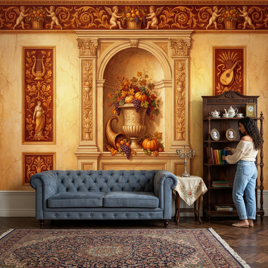Art Wall Murals feel gallery-like when the composition has intentional negative space, bold brushstroke textures, or layered shapes—think abstract art wall murals with off-center focal points and visible “paint” grain. Choose a design with a limited palette (ivory, charcoal, terracotta) if you want it to feel like wall murals art rather than a busy pattern. Keeping nearby decor minimal—one slim picture ledge or a single sculptural vase—helps the mural stay the main visual.