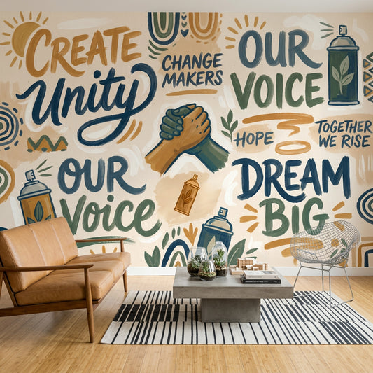 In a small room (like 8'×10'), an accent wall behind the bed or sofa works best when the Art Wall Murals design has a large focal element—one big brushstroke or a single graffiti tag—so it doesn’t feel crowded. In a larger room (12'×16' or open-plan), you can run wall murals across two walls if the pattern is airy (lots of off-white space, thin charcoal lines). If the artwork is dense and high-contrast, keep it to one wall and repeat the colors with pillows or a rug.