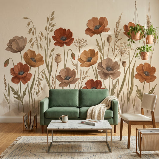 Bohemian Style Wall Murals are very much in style because current interiors lean into warm, lived-in layers—think terracotta, sand, clay, and muted sage rather than loud, high-contrast prints. For a current look, choose boho wall murals with oversized line art, sun motifs, or a soft “boho rainbow wall mural” palette and pair it with black metal accents or light oak. If you want it to feel fresh, skip tiny repeated icons and go for airy, large-scale shapes with plenty of negative space.