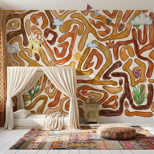 Under warm evening light, Brown Wall Murals pick up more depth than photos usually show: chestnut reads richer, taupe looks smokier, and fine grain or brushed textures become clearer from across the room. In larger layouts, Brown Wall Murals tend to read as broad planes of color first and pattern second, which is useful when you want wall murals to anchor a seating area without making the wall feel visually chopped up. For homes balancing mural scale with family spaces, the softer end of this palette can sit comfortably near Kids Room Wall Murals where oak toys, camel storage bins, and off-white bedding need a warmer backdrop.