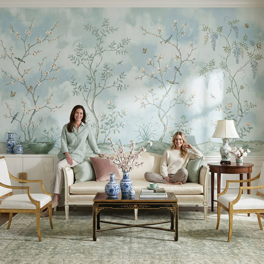 Cherry Blossom Wall Murals often feature soft pinks and whites, so furniture in neutral shades like beige, white, or light gray can create a lovely balance. You might also consider adding accents in darker shades, like deep greens or browns, to add depth to the room.