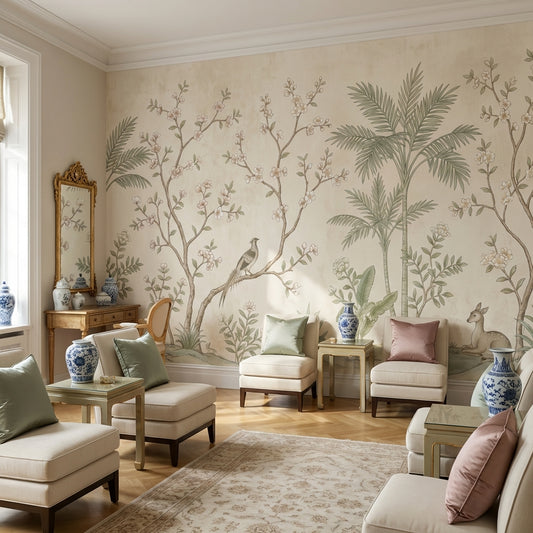 There's something about Cherry Blossom designs that just works. The soft pinks and whites paired with subtle greens create a serene atmosphere that can instantly uplift your home. The intricate patterns mimic the beauty of nature, bringing a sense of tranquility and elegance. These murals evoke feelings of spring and renewal, making them a beautiful addition to various spaces in your home.