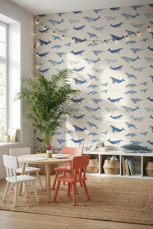 Cream Wallpaper is especially useful on the wall behind a camel sofa, the chimney breast between built-in shelves, or the full headboard wall behind an upholstered bed, where its warmth keeps the room from feeling flat under evening lamps. In family spaces, Cream Wallpaper can read as lively wallpaper when it carries a trailing botanical or small repeating motif, and our Statement Wallpaper For Living Room guide shows how to place it behind sectionals, consoles, and reading chairs. For softer schemes with painted cribs, ash wood dressers, and rounded shelves, browse our Nursery Wallpaper collection for nursery wallpaper and kids wallpaper options in the same tonal range. We offer custom sizes, a paste-the-wall installation method, and worldwide shipping, so Cream Wallpaper can be fitted neatly to alcoves, sloped ceilings, and long hallway walls.