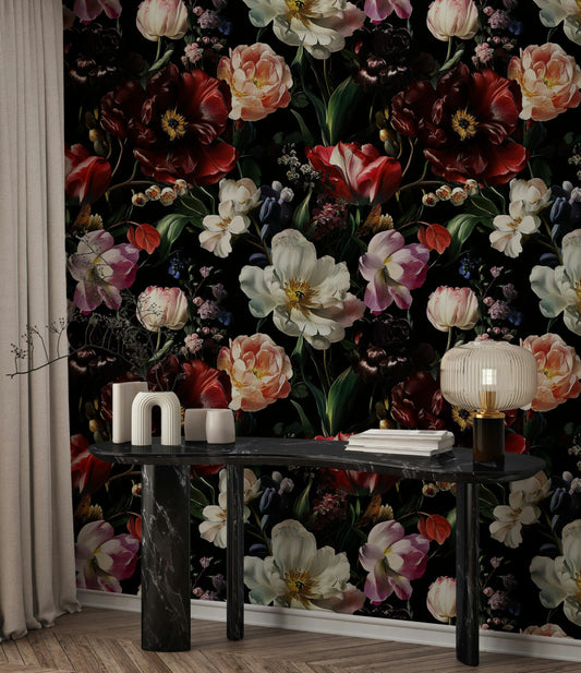 Floral wallpaper ranges from dark floral wallpaper and moody floral wallpaper styles to bold floral wallpaper in oversized patterns. Vintage floral wallpaper brings classic charm with options like vintage blue floral wallpaper and vintage green floral wallpaper, while modern floral wallpaper offers fresh interpretations. Large floral wallpaper, big floral wallpaper, and large scale floral wallpaper create statement walls, while floral wall mural designs capture botanical detail across wide panels. From retro floral wallpaper to dramatic floral wallpaper, this category covers timeless and contemporary looks for bedrooms, living rooms, and feature walls.
