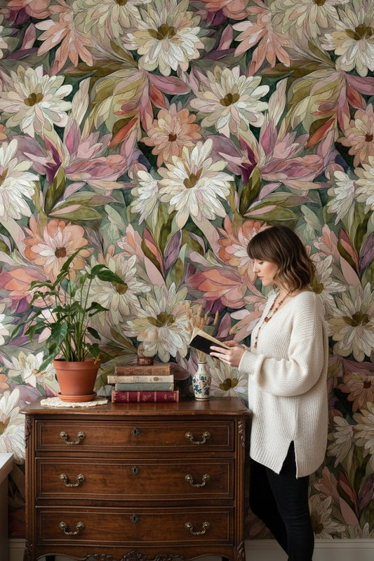 Floral wallpaper ranges from dark floral wallpaper and moody floral wallpaper styles to bold floral wallpaper in oversized patterns. Vintage floral wallpaper brings classic charm with options like vintage blue floral wallpaper and vintage green floral wallpaper, while modern floral wallpaper offers fresh interpretations. Large floral wallpaper, big floral wallpaper, and large scale floral wallpaper create statement walls, while floral wall mural designs capture botanical detail across wide panels. From retro floral wallpaper to dramatic floral wallpaper, this category covers timeless and contemporary looks for bedrooms, living rooms, and feature walls.