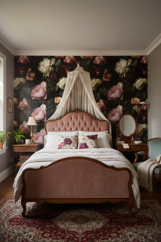 Floral wallpaper ranges from dark floral wallpaper and moody floral wallpaper styles to bold floral wallpaper in oversized patterns. Vintage floral wallpaper brings classic charm with options like vintage blue floral wallpaper and vintage green floral wallpaper, while modern floral wallpaper offers fresh interpretations. Large floral wallpaper, big floral wallpaper, and large scale floral wallpaper create statement walls, while floral wall mural designs capture botanical detail across wide panels. From retro floral wallpaper to dramatic floral wallpaper, this category covers timeless and contemporary looks for bedrooms, living rooms, and feature walls.