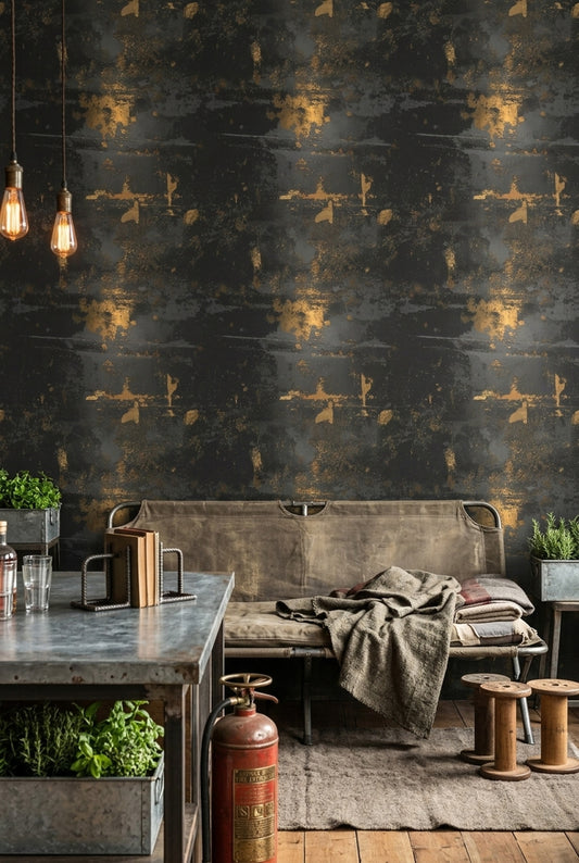 Gold Wallpaper stands out through its specific color range: pale champagne that reads almost linen in morning light, deeper brass that sharpens against charcoal cabinetry, and honeyed ochre that gives plaster-like depth beside oak furniture. We often see it used in fine linear patterns, brushed metallic textures, and floral wallpaper motifs where floral wallpaper flowers are outlined with a subtle reflective finish rather than heavy shine. A ribbed oak console, camel leather dining chairs, and a cream boucle bench keep the palette grounded, while our guide to Statement Wallpaper For Living Room shows how metallic surfaces hold a focal wall without feeling flat. If you want a larger-scale mural wallpaper layout instead of repeated wallpaper for walls, see Gold Wall Murals.