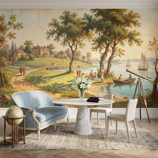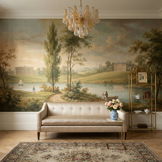 Landscape Wall Murals work especially well on the main wall behind a low-profile sofa, on the bed wall behind an upholstered headboard, or at the end of a narrow hallway where the receding view can visually extend the architecture. For clients drawn to vintage landscape wall murals for living room schemes, we often place the mural on the wall facing the entry so the full scene is visible at once, then keep side walls quieter; in a guest bath, scenic depth can be balanced with Bathroom Wall Murals that suit smaller wall sections above wainscoting or behind a freestanding tub. For more placement ideas, read Mountain Landscape Wall Murals for Statement Walls. All Landscape Wall Murals are available in custom sizes, use a paste-the-wall install method, and ship worldwide.
