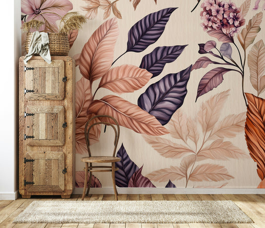 Leaf wallpaper features a wide range of botanical designs, from ginkgo leaf wallpaper with elegant fan-shaped foliage to bold monstera leaf wallpaper ideal for tropical themes. Seasonal options like fall leaf wallpaper add warm tones and natural texture, while monstera leaf background styles bring a lush, layered look. These patterns work across bedrooms, living rooms, or feature walls to create a natural atmosphere indoors.