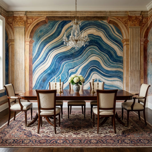 A dining room is often the best spot for Marble Wall Murals because the stone look pairs naturally with a table and feels intentional as a backdrop for lighting and art. Try an accent wall behind a sideboard, or run it on the wall your dining table faces so the veining becomes the focal plane. For a more current take, a soft white marble wall mural on the ceiling can mimic a luxe stone canopy without making the room feel dark.