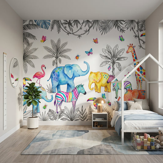 If your room is under about 120 sq ft, Multicolor Wall Murals usually work best on one accent wall, especially when the design includes multiple saturated hues like fuchsia, cobalt, and lime. For larger spaces, you can wrap two or more walls when the pattern is large-scale (big watercolor washes or oversized geometric blocks) and the furniture is mostly solid-colored. When going full-room, choose wall murals with a lighter background so the space doesn’t feel closed in.