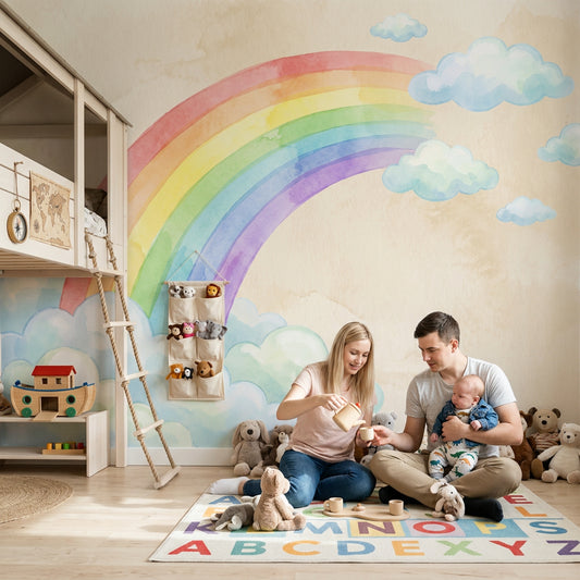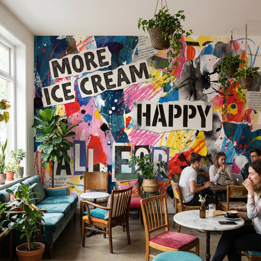 For Multicolor Wall Murals, anchor the palette with a quiet base like warm white (Alabaster), soft greige, or matte charcoal, then repeat one or two mural colors—teal, terracotta, or mustard—in pillows or a rug. Metals matter: brushed brass warms up rainbow-heavy wall and murals, while blackened steel sharpens designs that include cyan and magenta. Keep accent paint to a single solid shade (like deep navy) so the custom wall murals stay the focal point.
