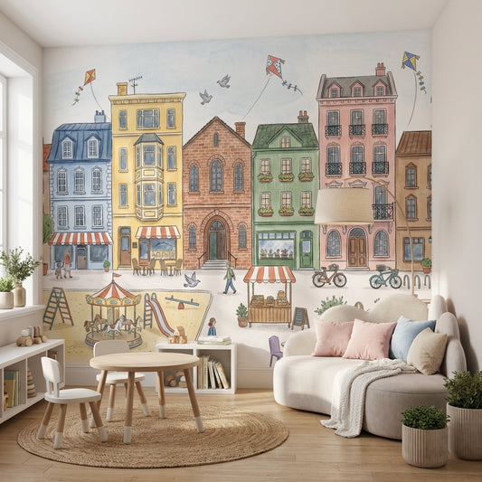 A playroom or creative home office is a natural match for Multicolor Wall Murals because the color variety supports focus and upbeat energy—try the main wall behind a desk or craft table. In a bedroom, place the wall murals on the headboard wall and choose softer blends (lavender, sky blue, peach) to keep it restful. For a small powder room, one high-impact wall plus a solid paint color on the other walls prevents visual overload while still giving that gallery feel.