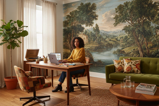 Nature wallpaper includes sweeping landscape wallpaper and mountain wallpaper views, along with misty forest wallpaper and dark forest wallpaper for atmospheric depth. Designs range from scenery wallpaper and nature landscape wallpaper to detailed forest wall mural and pine forest wallpaper. Vintage landscape wallpaper and nature murals offer timeless scenic backdrops, while nature scenery wallpaper captures calming vistas across wide panels. These patterns bring the outdoors into bedrooms, living rooms, and feature walls.