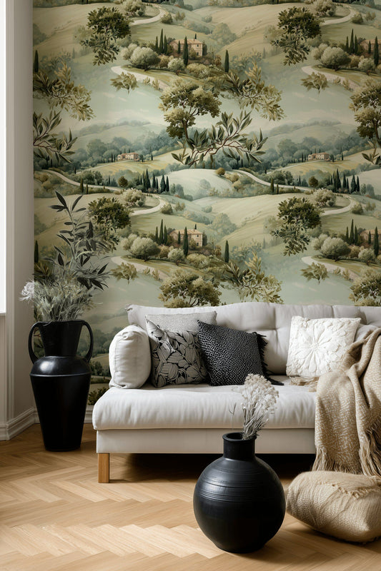 Nature wallpaper includes sweeping landscape wallpaper and mountain wallpaper views, along with misty forest wallpaper and dark forest wallpaper for atmospheric depth. Designs range from scenery wallpaper and nature landscape wallpaper to detailed forest wall mural and pine forest wallpaper. Vintage landscape wallpaper and nature murals offer timeless scenic backdrops, while nature scenery wallpaper captures calming vistas across wide panels. These patterns bring the outdoors into bedrooms, living rooms, and feature walls.