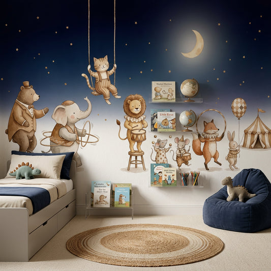 Pair Navy Blue Wall Murals with crisp chalk white, warm ivory, or greige for trim, then add accents in terracotta, ochre, or blush for warmth. If you want a cooler scheme, use sage green, sea-glass, or pewter with navy wall murals to keep it calm and tailored. For a high-contrast look, add small hits of copper or brass through hardware and lighting.