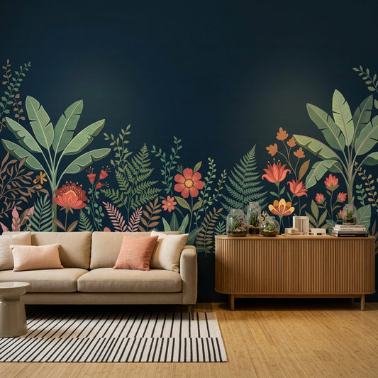 A bedroom is a top choice for Navy Blue Wall Murals because deep navy supports a low-glare, restful feel—place it behind the headboard and keep side walls lighter. In a home office, put a navy blue wall mural behind the desk to reduce visual clutter on video calls and make screens feel less harsh. For a dining room, a large wall mural floral design navy works well on the longest wall, especially with a warm wood table and brass chandelier.