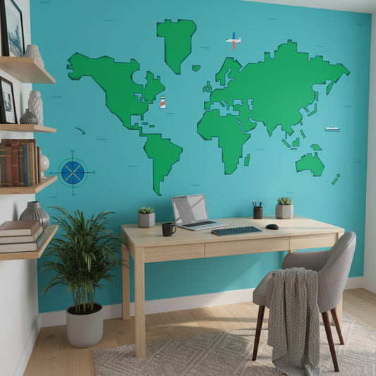 World map wallpaper brings geography and design together with detailed cartographic prints. Options range from classic map wallpaper and vintage map wallpaper to world map mural wallpaper for large-scale wall coverage. Topographic map wallpaper highlights terrain lines, while brown world map styles give a warm, antique look. Map of the world wallpaper and world map wall mural designs suit offices, studies, classrooms, and travel-inspired interiors.