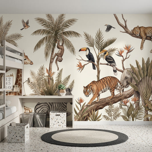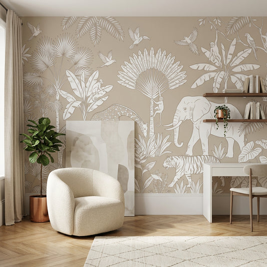 Zebra is trending because designers are using high-contrast graphics as a substitute for art—one large zebra wall murals panel can give the same impact as a gallery wall with less visual clutter. The current take leans toward off-black/charcoal stripes on warm ivory, or slightly distressed “ink” edges that feel more artisanal than a hard, uniform print. If you like the look but want it subtle, choose peel and stick wall murals in a softer palette and keep nearby patterns minimal.