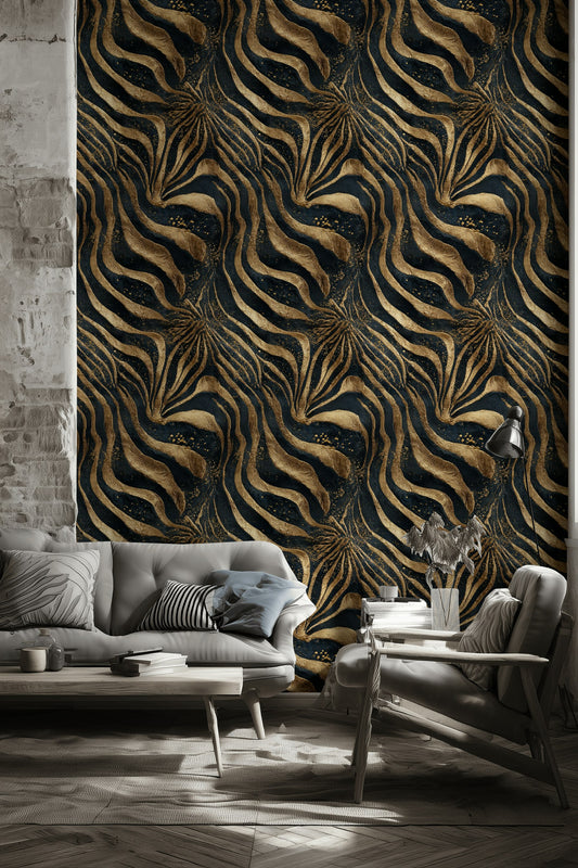 Zebra reads sharper than floral wallpaper and more tailored than lively wallpaper because its pattern relies on high-contrast striping, broken edges, and a brushed texture that softens the black into charcoal and espresso undertones. In daylight, Zebra Wallpaper looks especially clean beside a camel leather bench, matte black sconces, and a walnut dresser; in evening light, the ivory base picks up cream and oat notes that sit well with boucle chairs and smoked glass lamps. For homes mixing graphic prints with practical wallpaper for walls, our Modern Wallpaper For Kitchen guide shows how strong pattern can still feel controlled near oak cabinetry and stone counters, and Teen Room Wallpaper offers a playful route if you want the same graphic energy in a younger space.