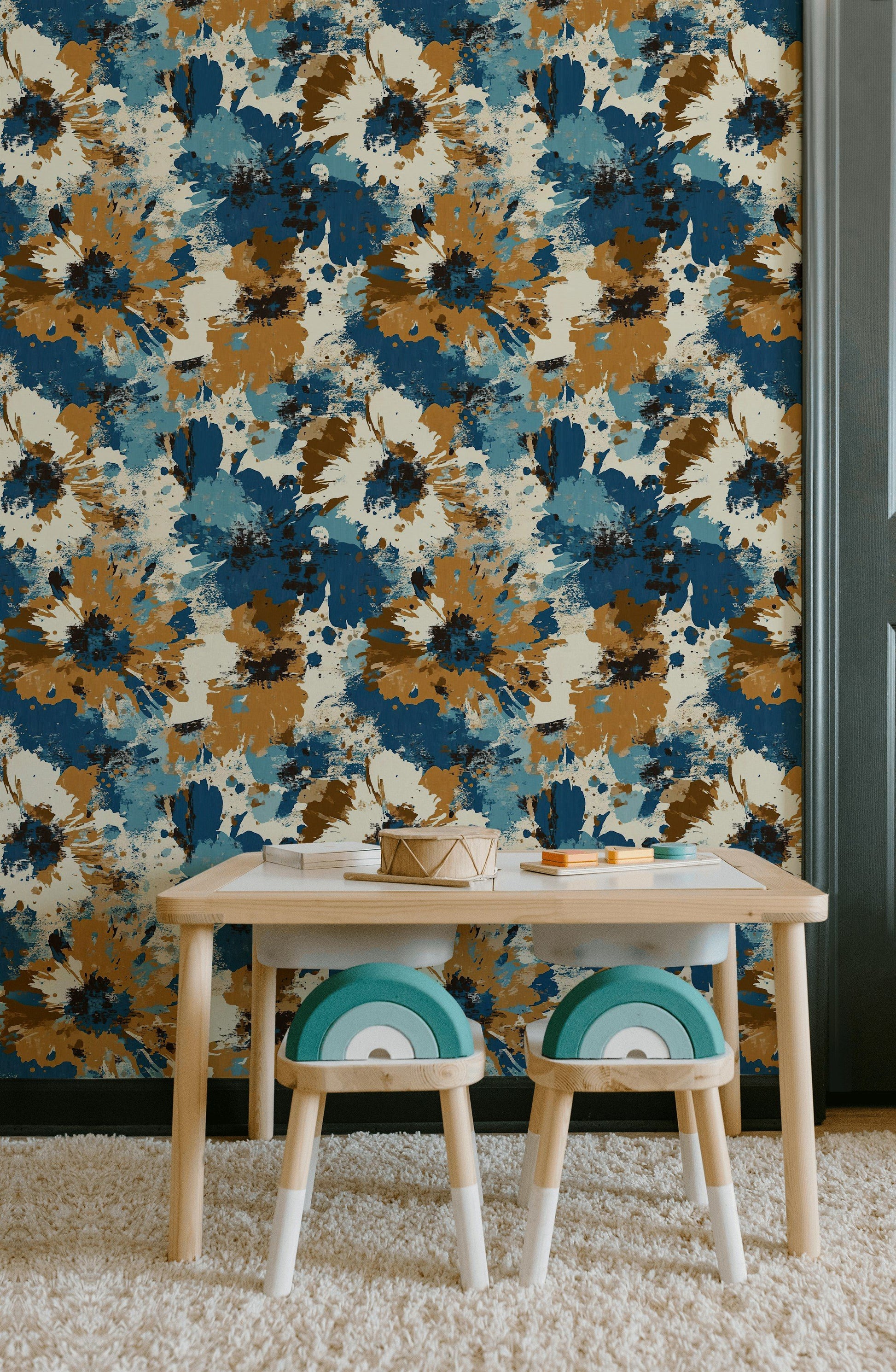 Make a bold statement with our dynamic abstract wallpaper featuring vibrant navy blue and warm copper splashes against a cream background. This contemporary wall mural creates an energetic focal point perfect for modern living spaces, home offices, or creative environments. The artistic paint splatter design adds depth and movement to any room, while complementing both neutral and colorful décor schemes. Our premium peel and stick material ensures easy installation and clean removal without wall damage, making it ideal for homeowners and renters alike. Each panel is printed with high-quality inks that maintain their vivid colors over time, bringing gallery-worthy art directly to your walls.
