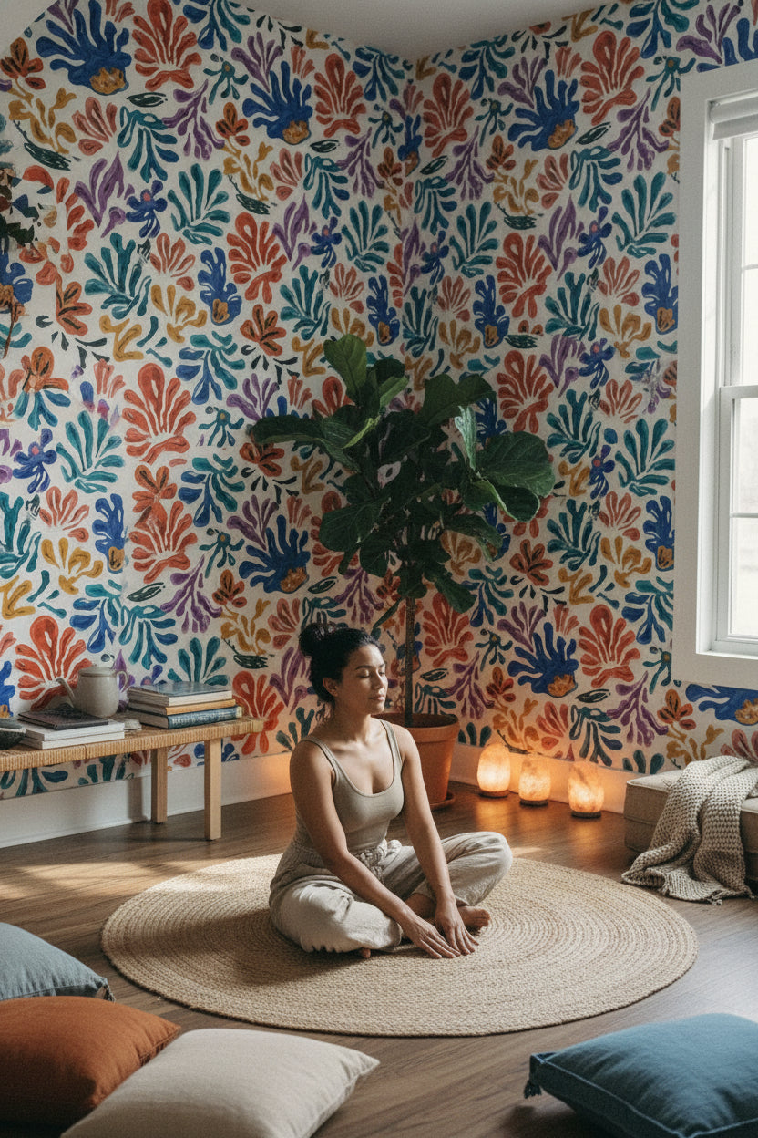 The bold floral design of the Vibrant Multicolor Tropical Floral Pattern Wallpaper complements a bohemian style beautifully. Its multicolor pattern and tropical themes add an eclectic and spirited flair, perfect for creating a boho-chic ambiance.