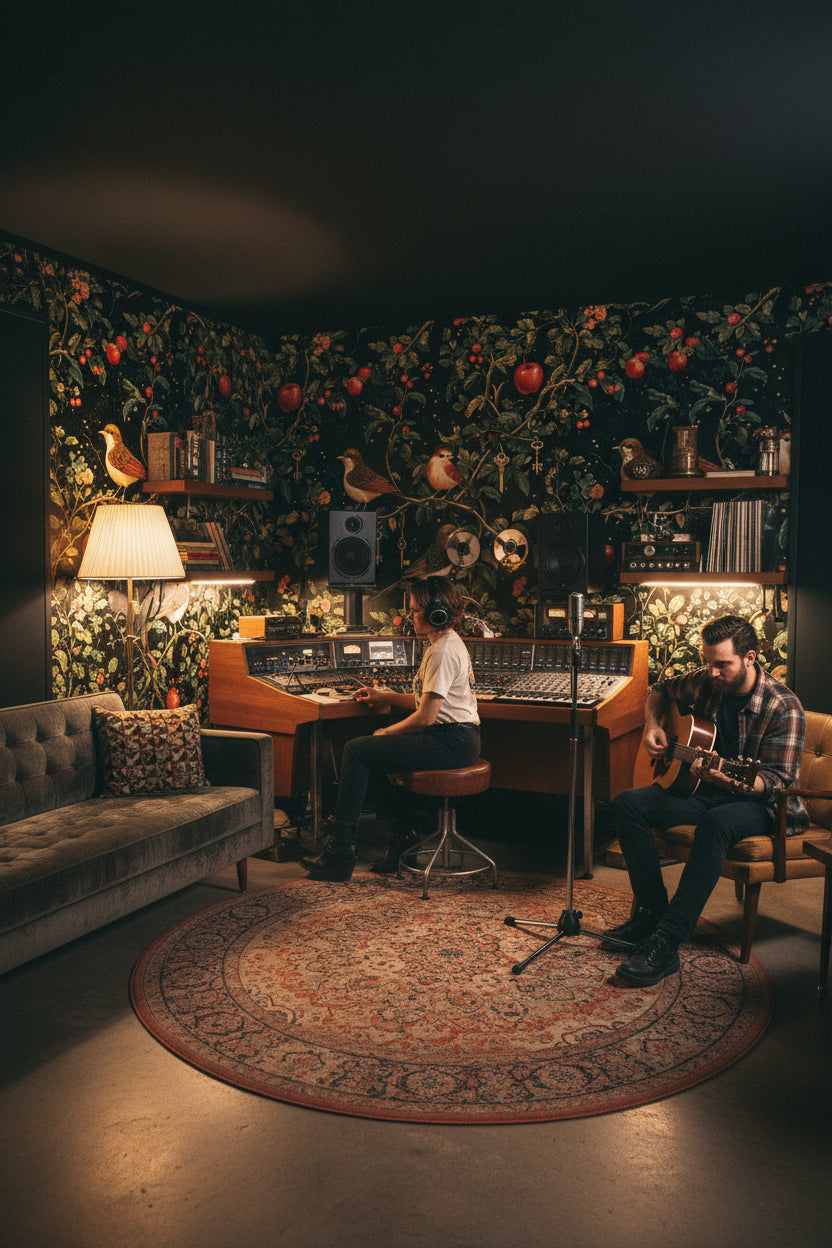Yes, the Dark Botanical Elegance with Birds Wallpaper is perfect for a modern living room. Its bold botanical patterns and lush green tones create an elegant backdrop that pairs beautifully with velvet furnishings and gold accents.