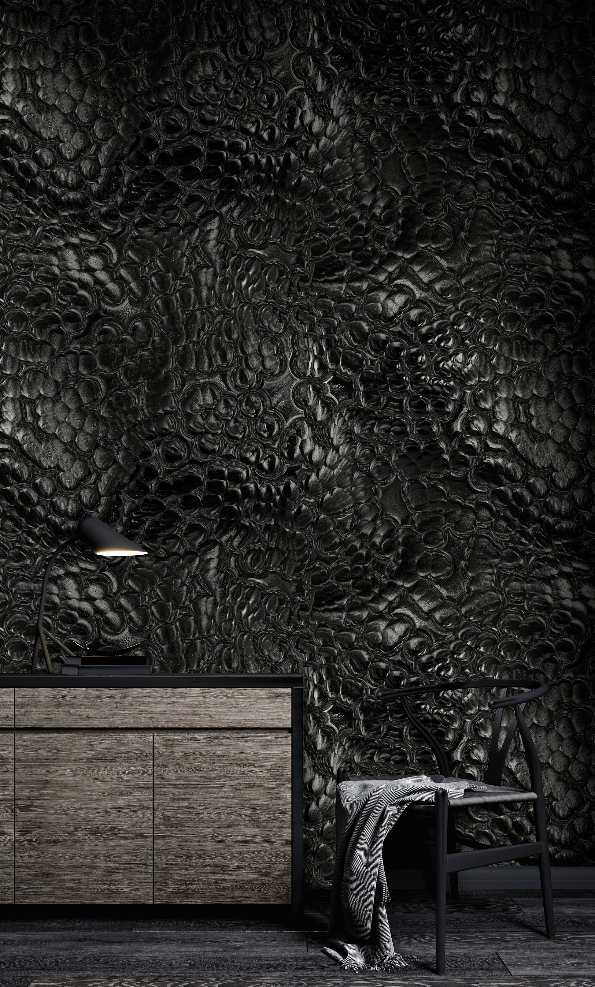 Black Snake Skin Wallpaper Black Texture Wall Mural