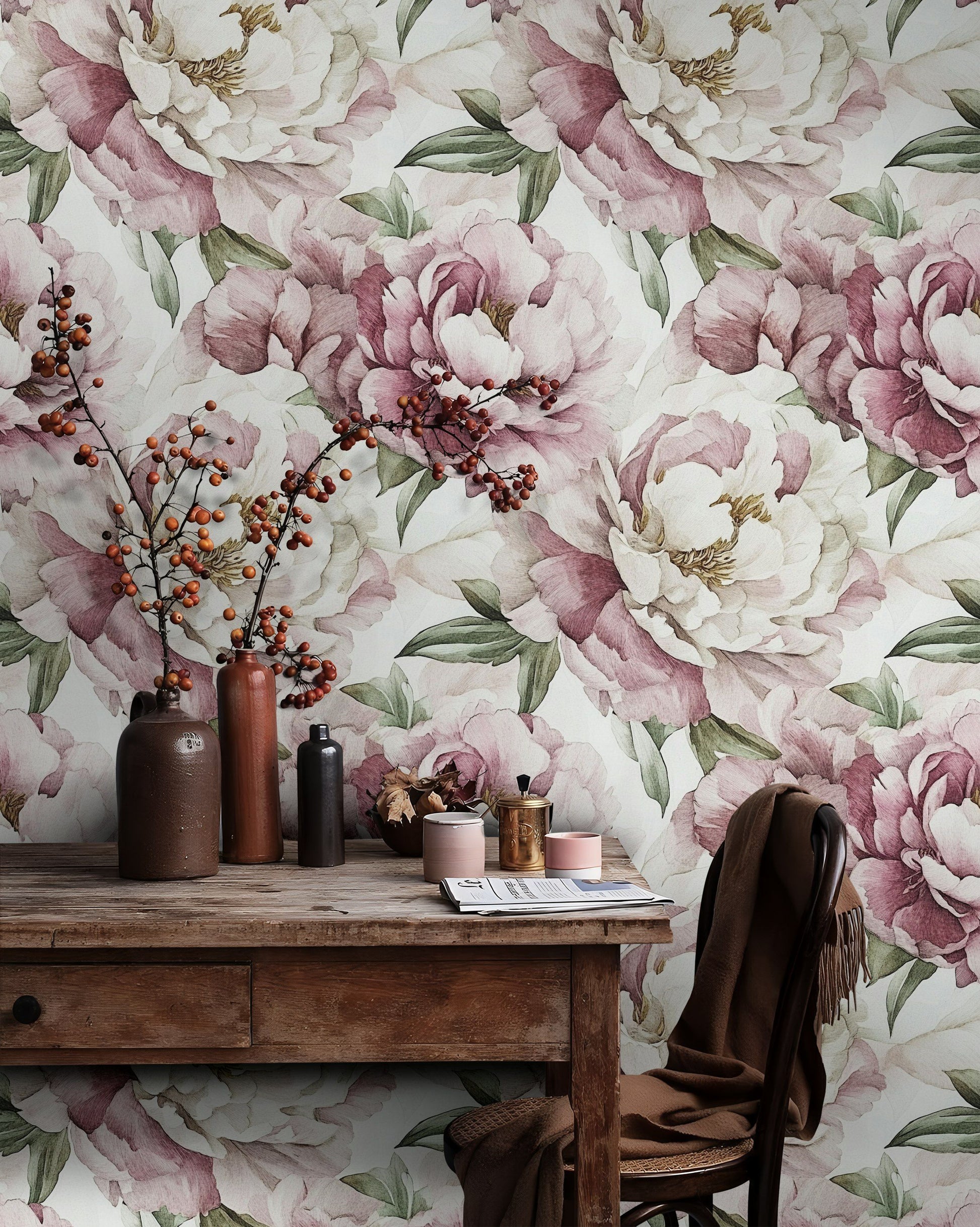 Enhance your home with the romantic elegance of our "Blush Pink Peony Wallpaper." This peel and stick wall mural features a stunning design of large peonies in soft blush pink and ivory hues, perfect for adding a touch of floral beauty to any room. Ideal for bedrooms, living rooms, or any space that needs a serene and sophisticated update, this wallpaper is easy to apply and remove. The delicate detailing of the peonies brings a sense of tranquility and charm, making it a versatile choice for various decor styles. Transform your walls with this beautiful and elegant floral design.