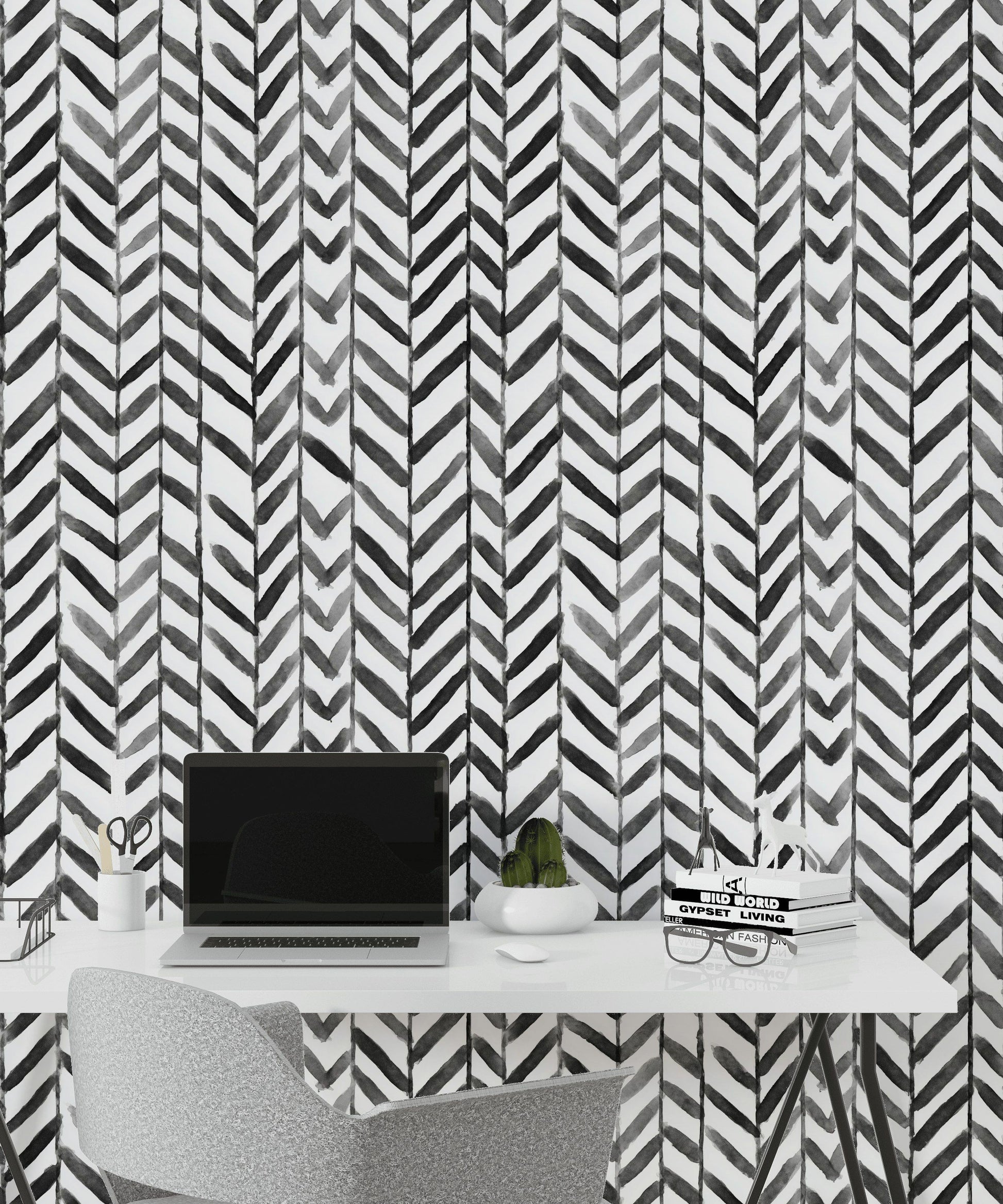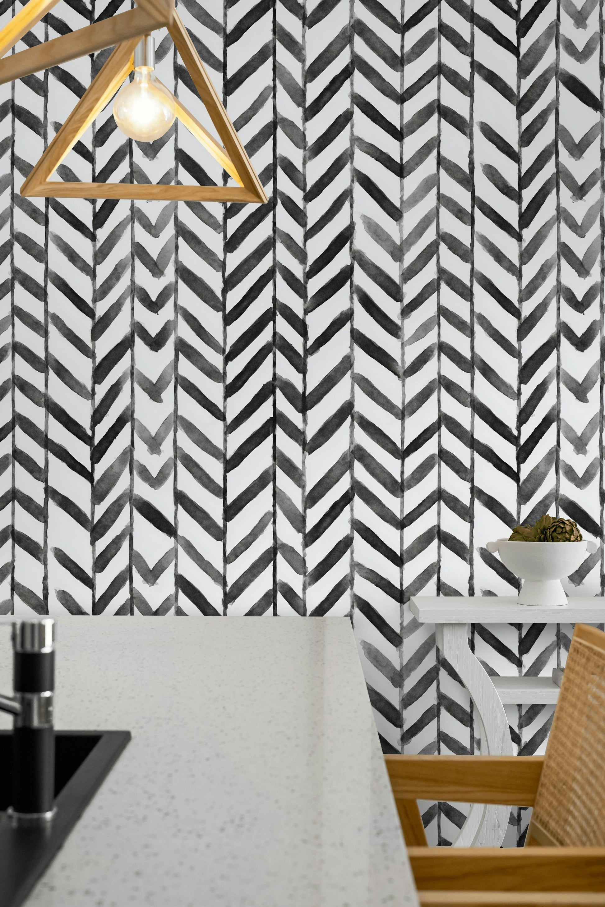 Boho Chevron Wallpaper Hand-Painted Black White Wall Mural