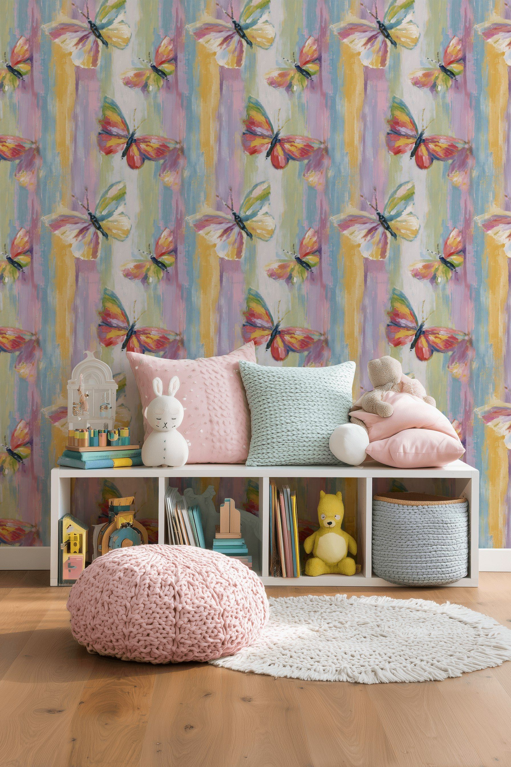 Butterfly Wallpaper Colorful Brushstroke Pastel Wall Mural