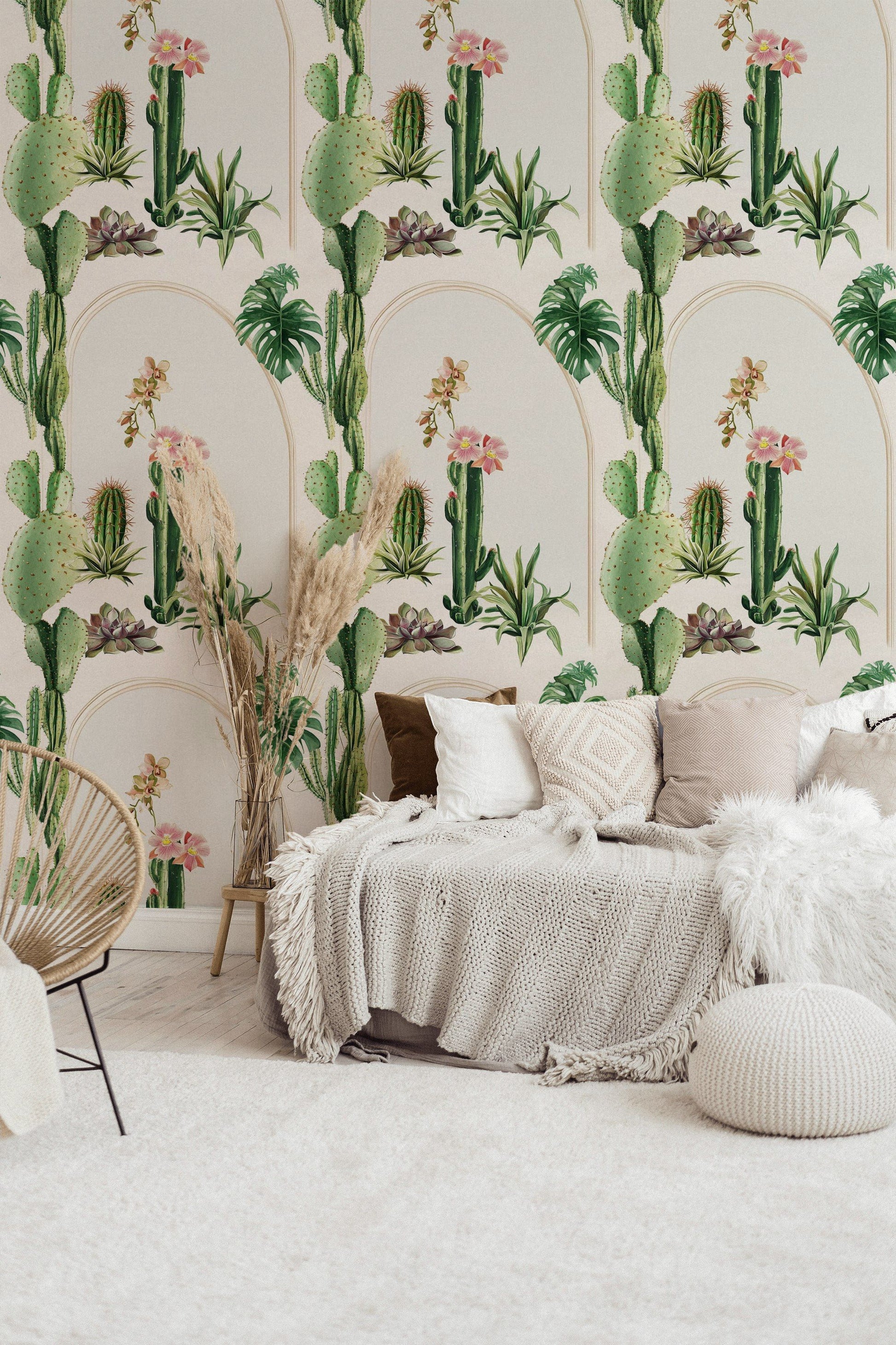 Elevate your space with this vibrant cactus & orchid arch wallpaper wall mural, designed to bring a refreshing burst of nature indoors. Showcasing a lively mix of cacti, succulents, and tropical blooms, it adds a bohemian-meets-Southwestern charm to living rooms, bedrooms, or home offices. Crafted from premium, fade-resistant materials, the mural offers both peel-and-stick and traditional paste installation for a hassle-free, flawless finish. Enjoy a lush, uplifting focal point that effortlessly blends modern style with the tranquility of a sun-kissed desert garden.