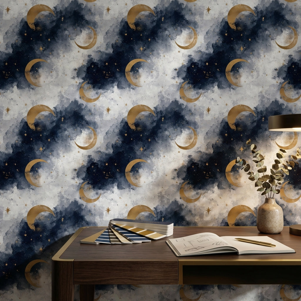 Celestial Wallpaper Moons Stars Removable Wall Decor - Complete Product Information