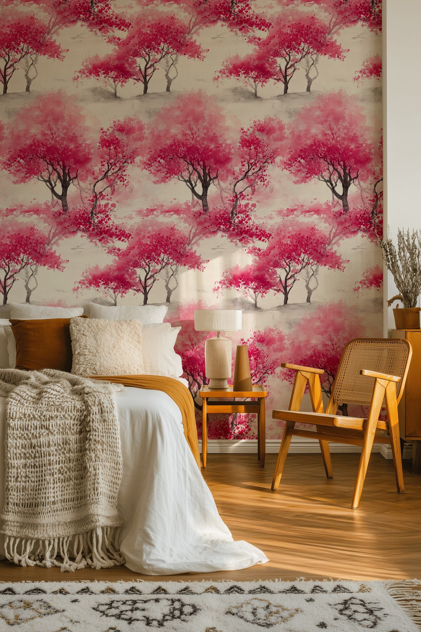 Cherry Blossom Wallpaper Watercolor Removable Decor