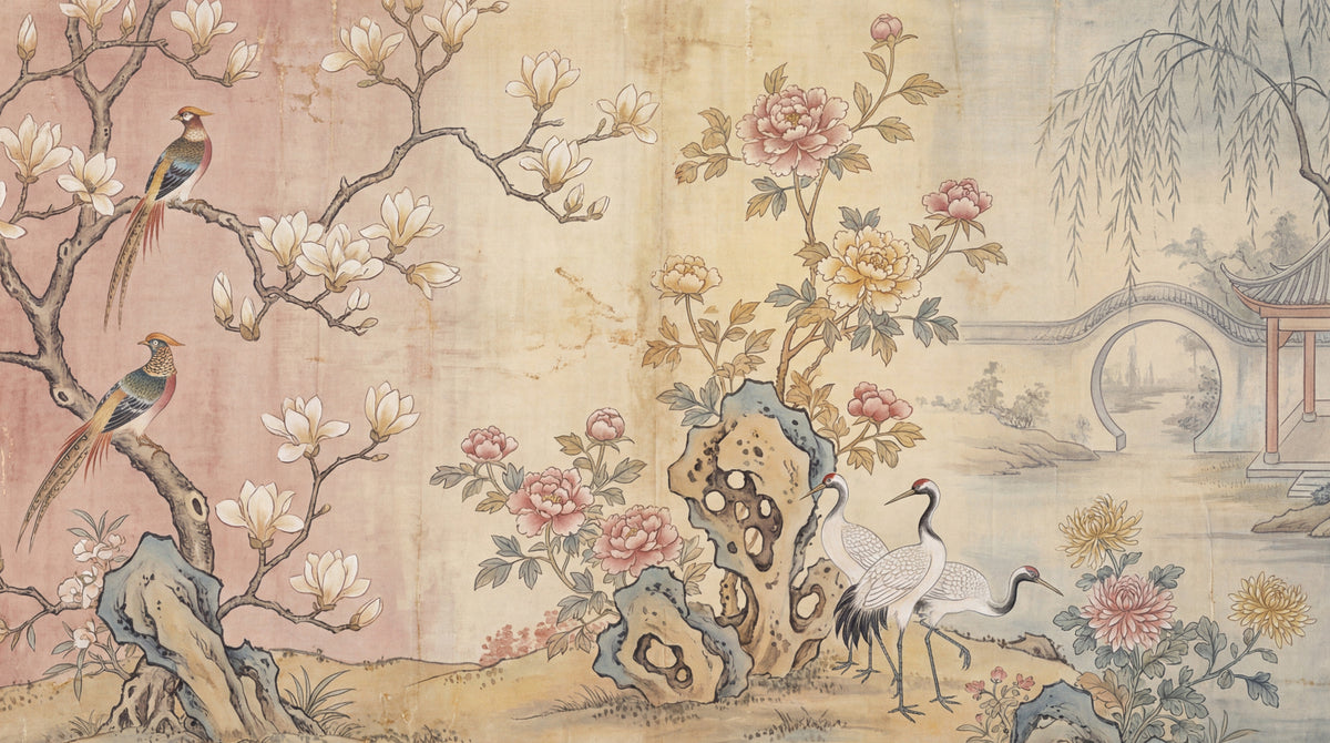 Chinoiserie Birds Wallpaper Asian Landscape Wall Decor - Complete Product Information