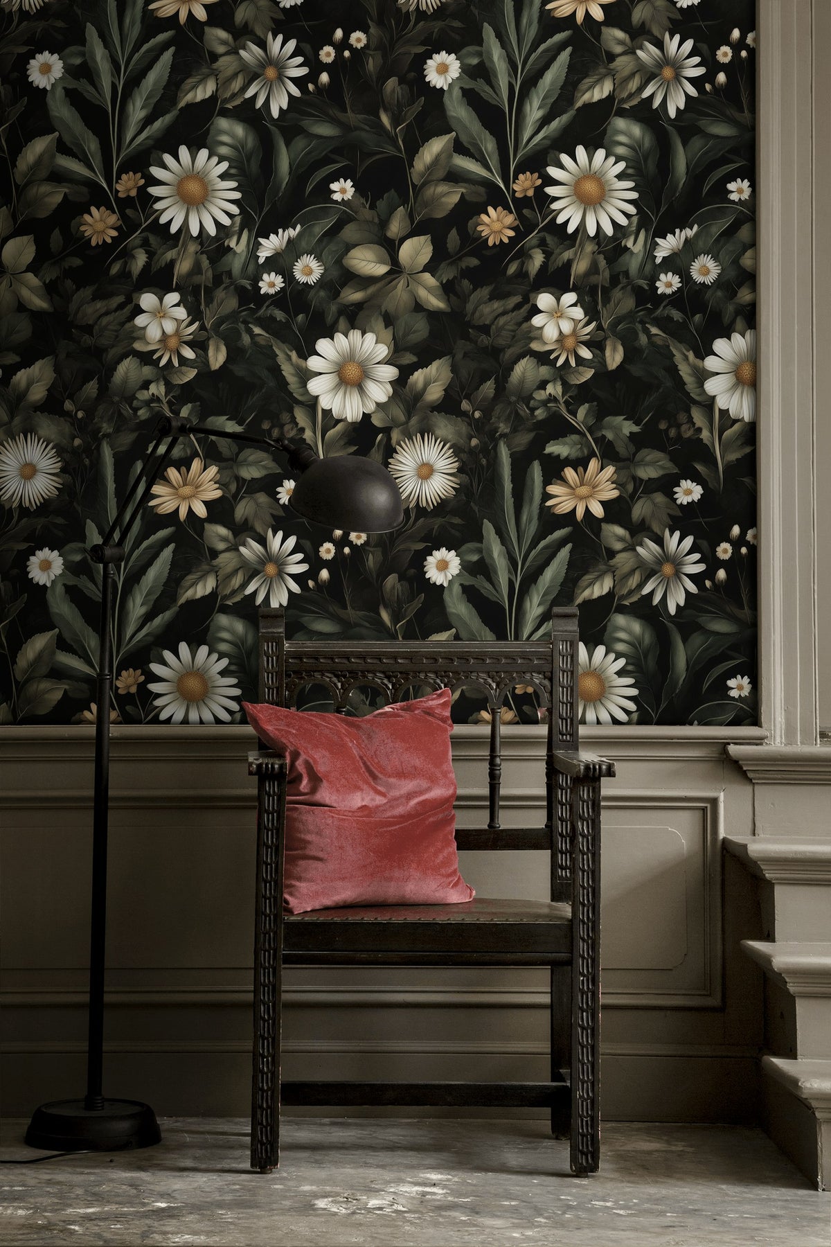 Elegant Dark Floral Daisies Wallpaper - Complete Product Information