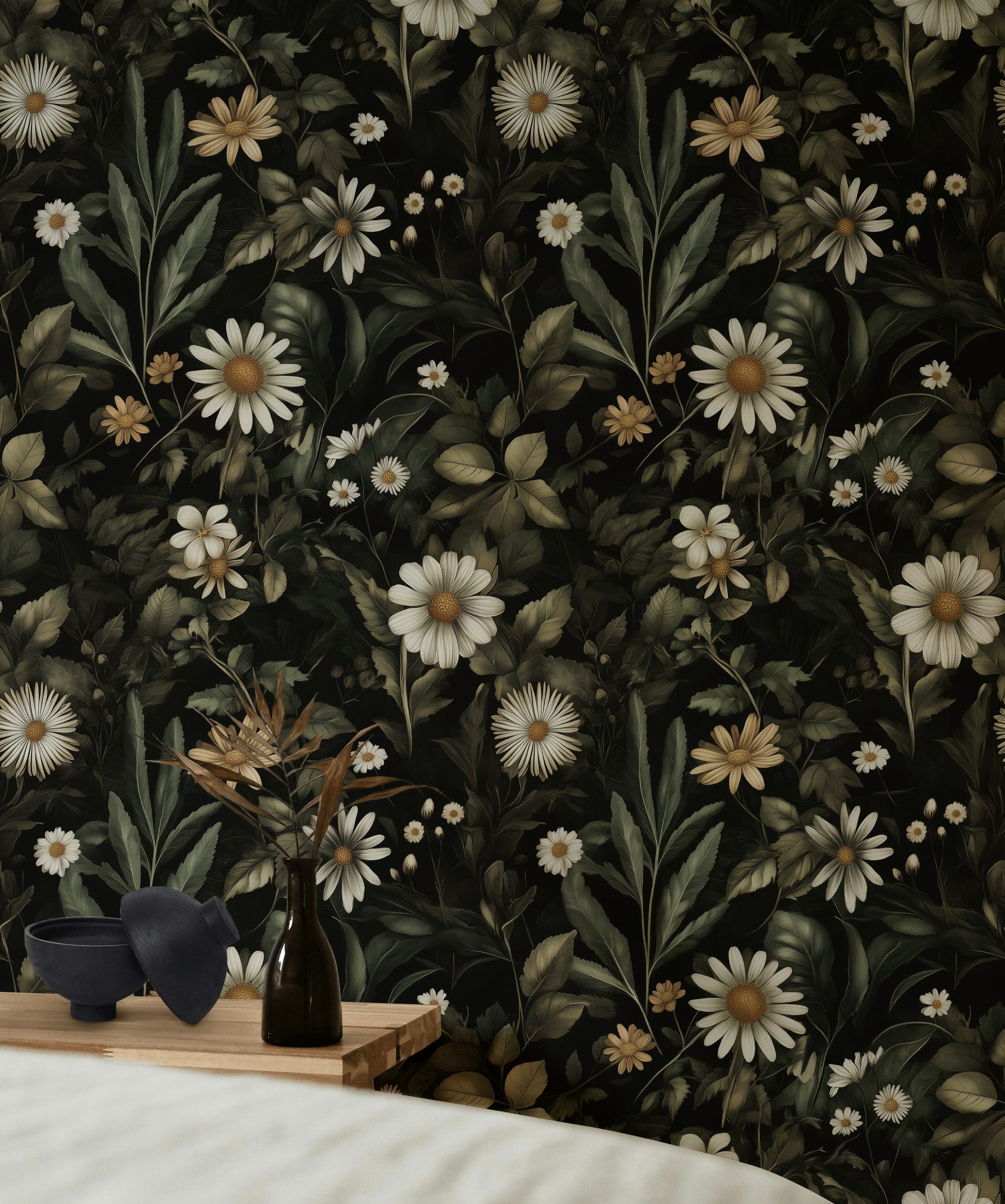 Dark Daisy Wallpaper Elegant Floral Cozy Interiors