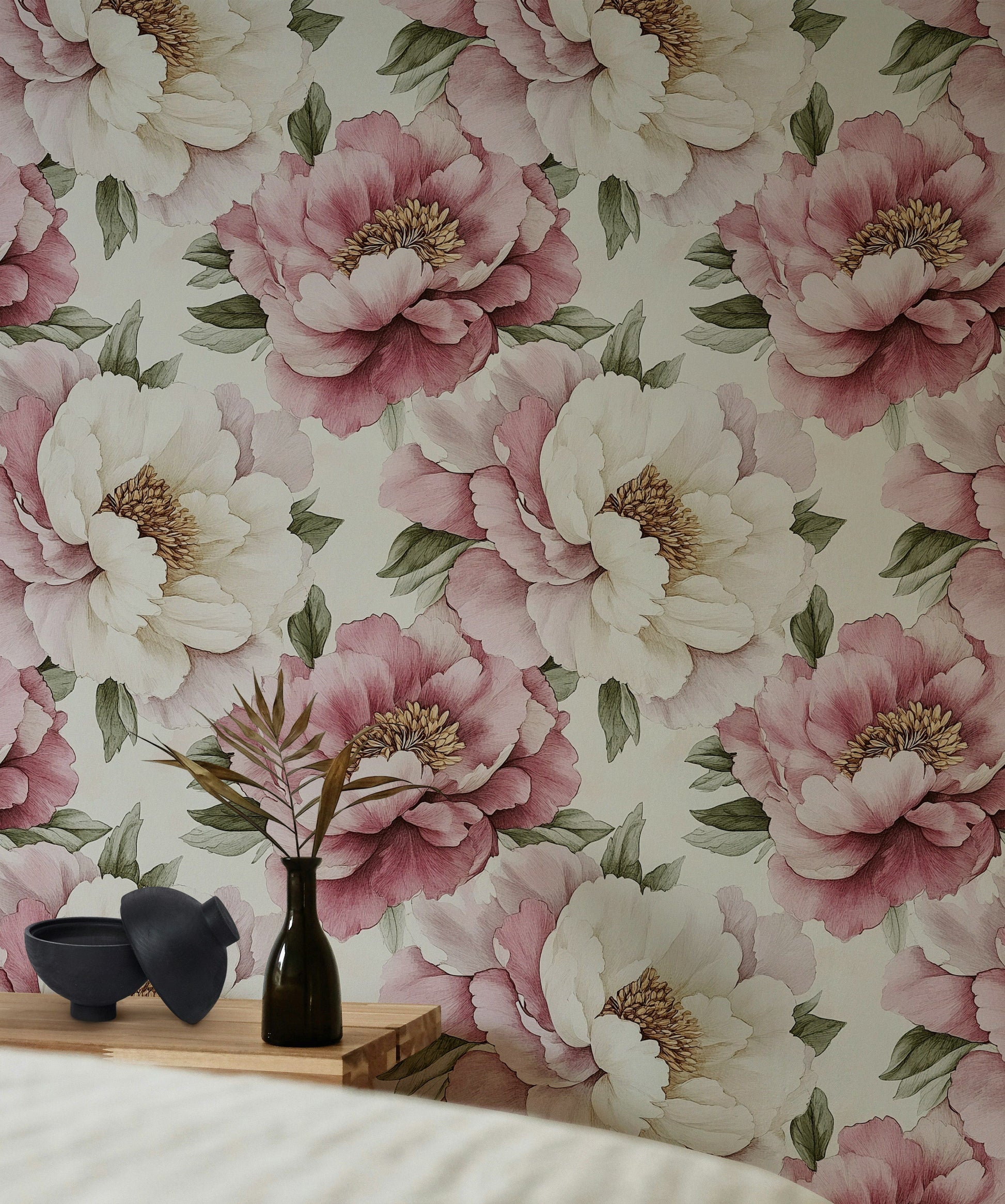 Elegant Blush Pink Peony Wallpaper Large Floral Wall Mural