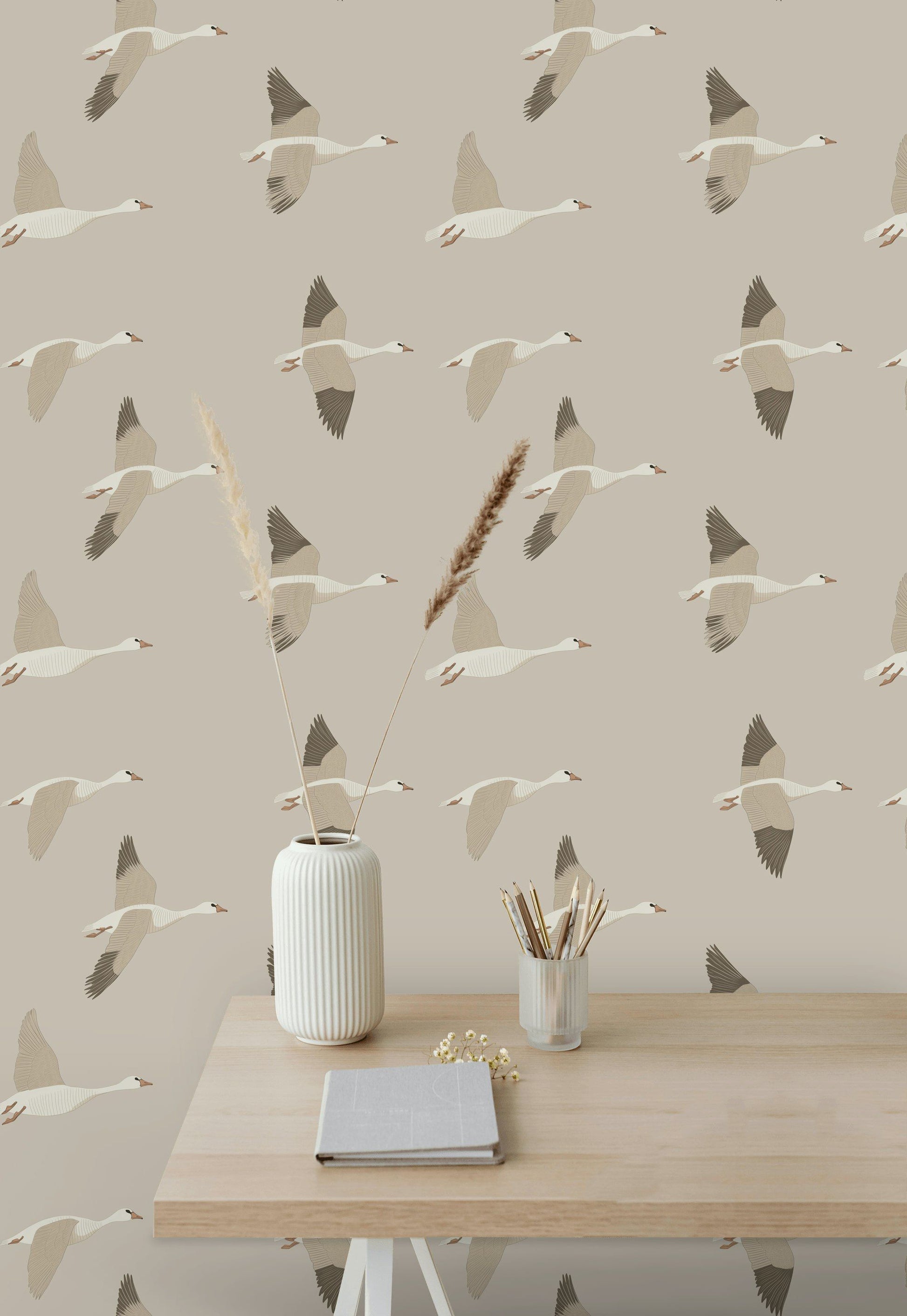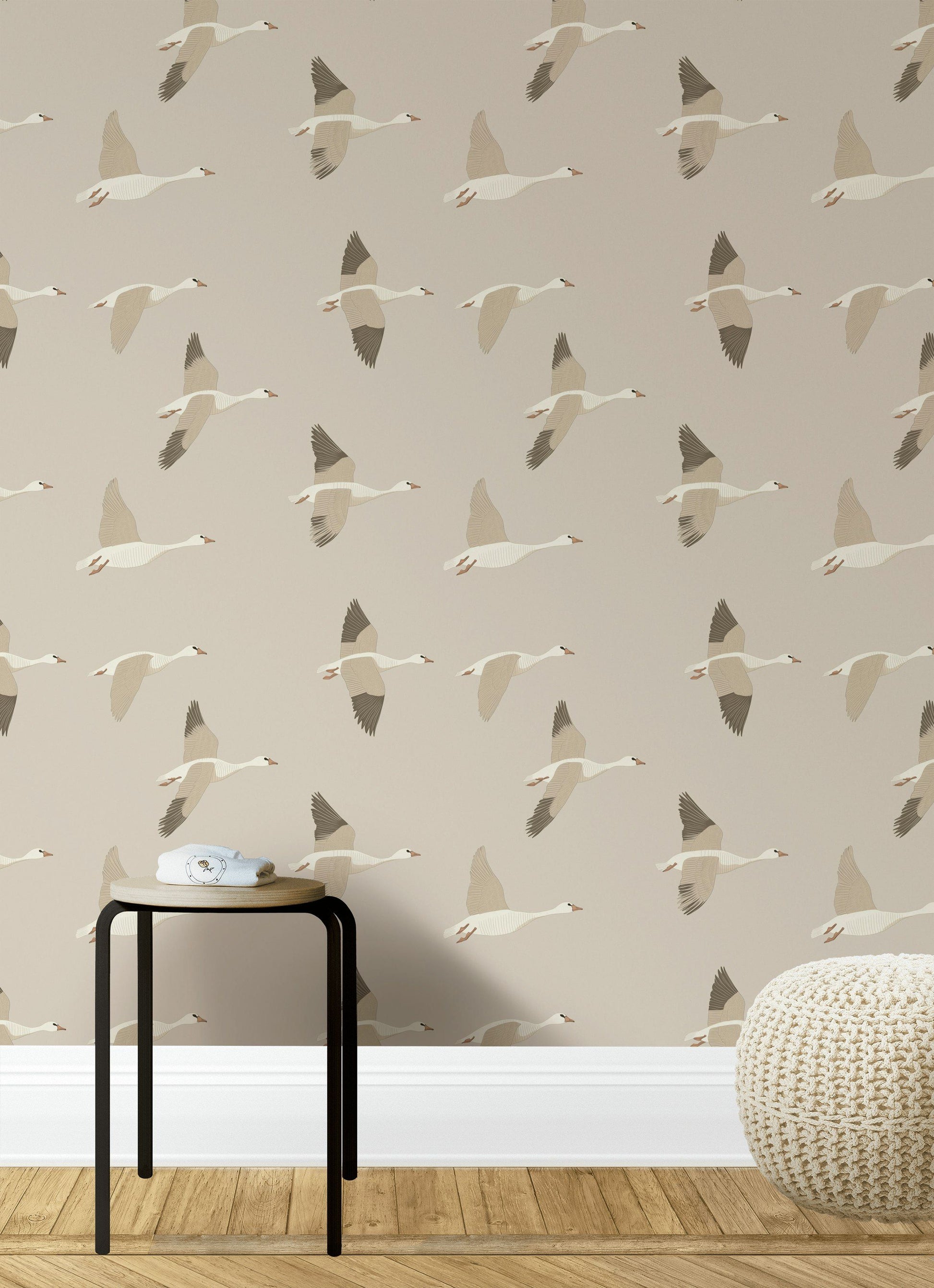 Flying Geese Wallpaper Neutral Scandinavian Wall Mural