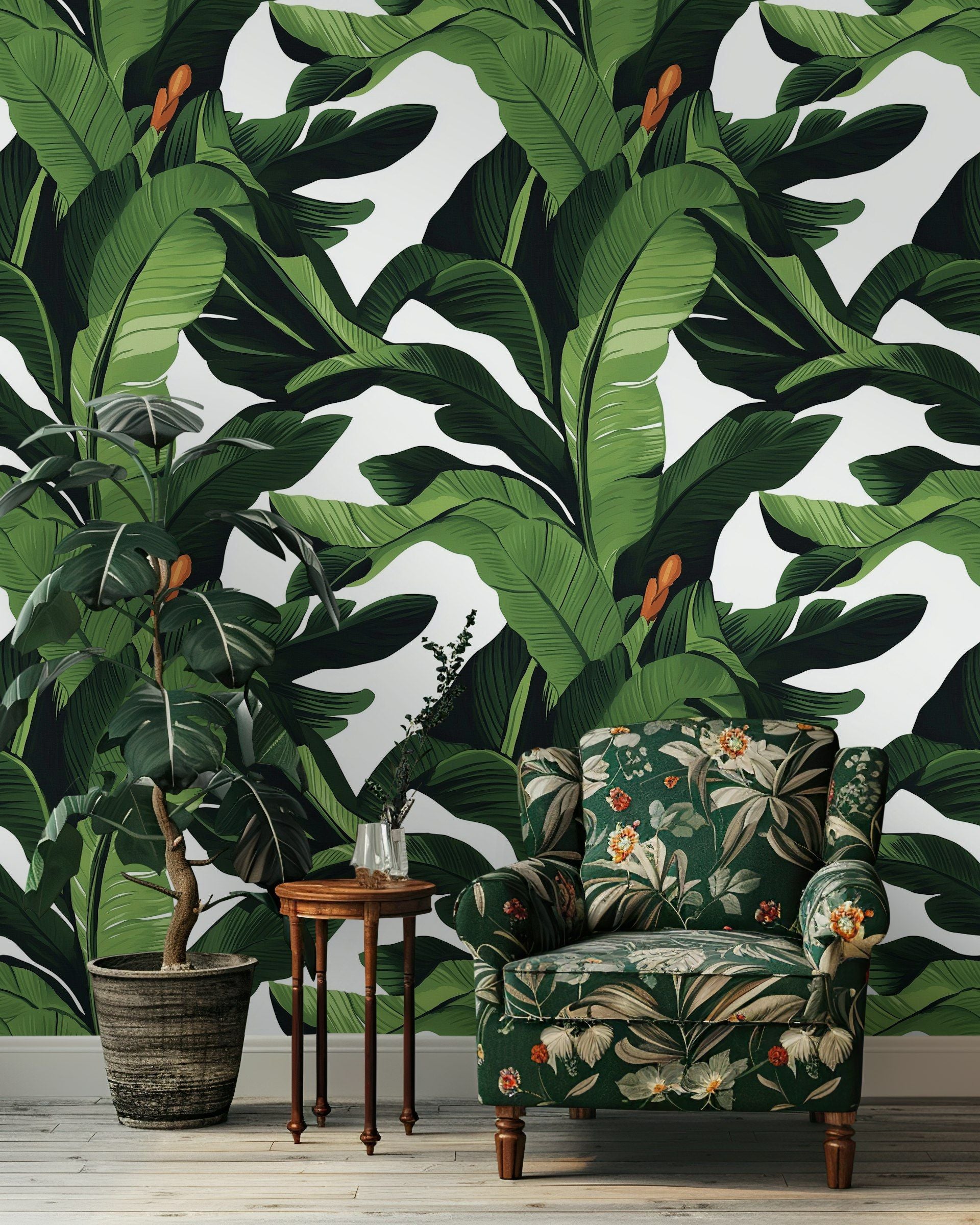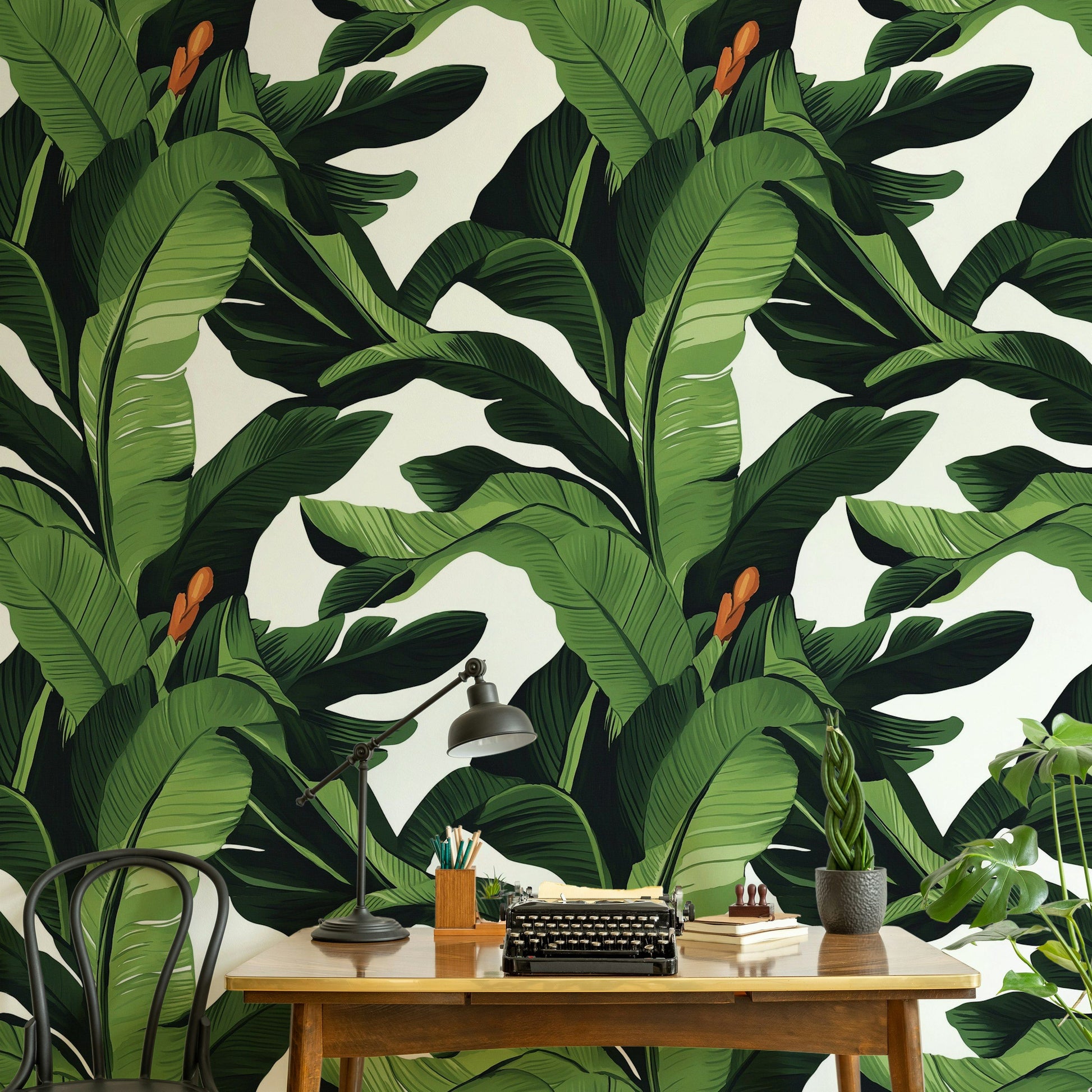 Green Tropical Banana Leaves Wallpaper Botanical Wall Mural