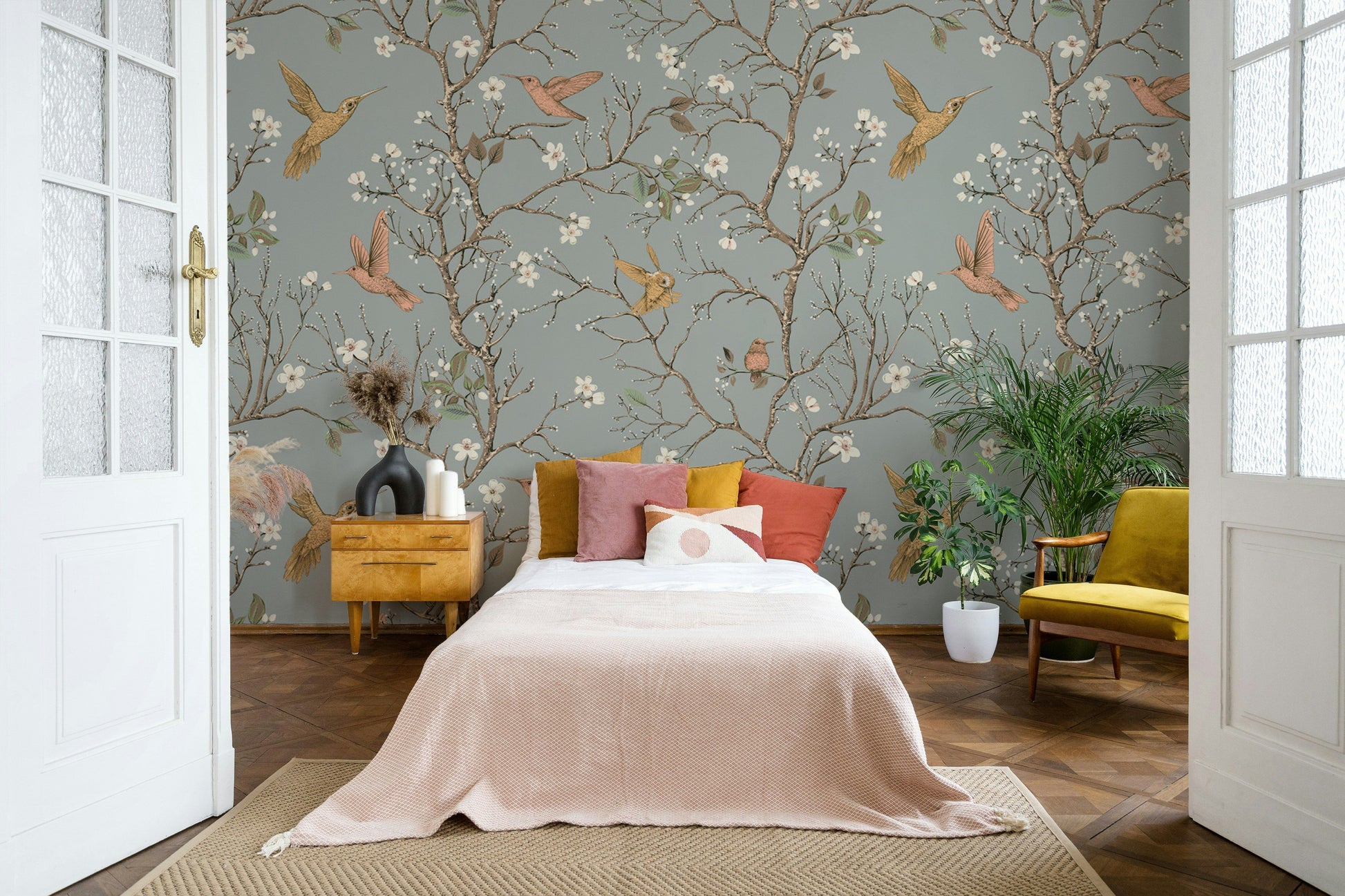 Hummingbirds Flowers Chinoiserie Wallpaper
