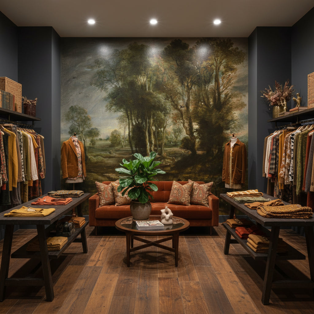 The antique landscape design of this mural perfectly complements rustic decor styles with its rich brown tones and vintage-inspired aesthetic. It pairs beautifully with wood furnishings and traditional accents, creating a warm, inviting atmosphere.