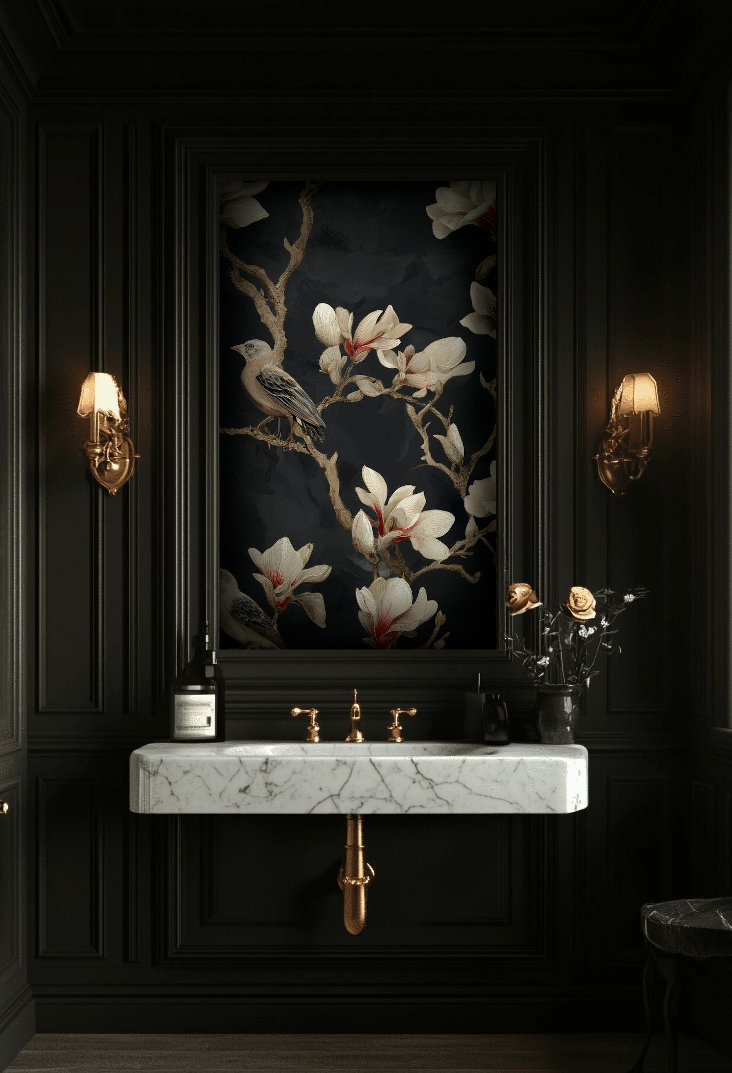 Magnolia Bird Wallpaper Dark Floral Elegant Wall Mural
