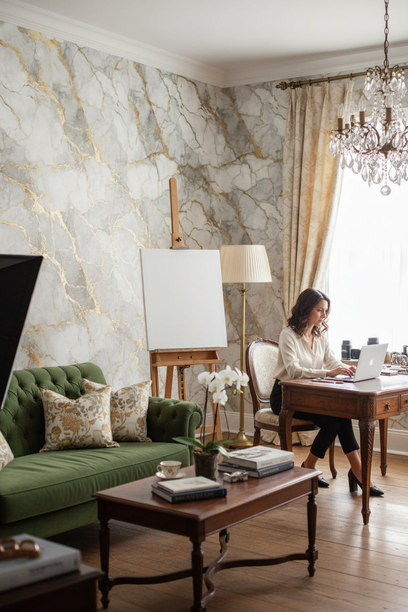 Marble Wallpaper Gold Veining Elegant Decorative Mural