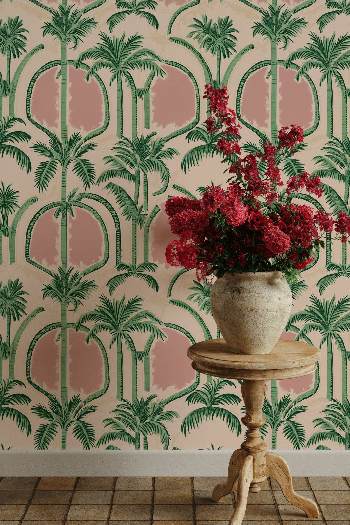 Soft Pink Art Deco Palm Tree Wallpaper - Complete Product Information