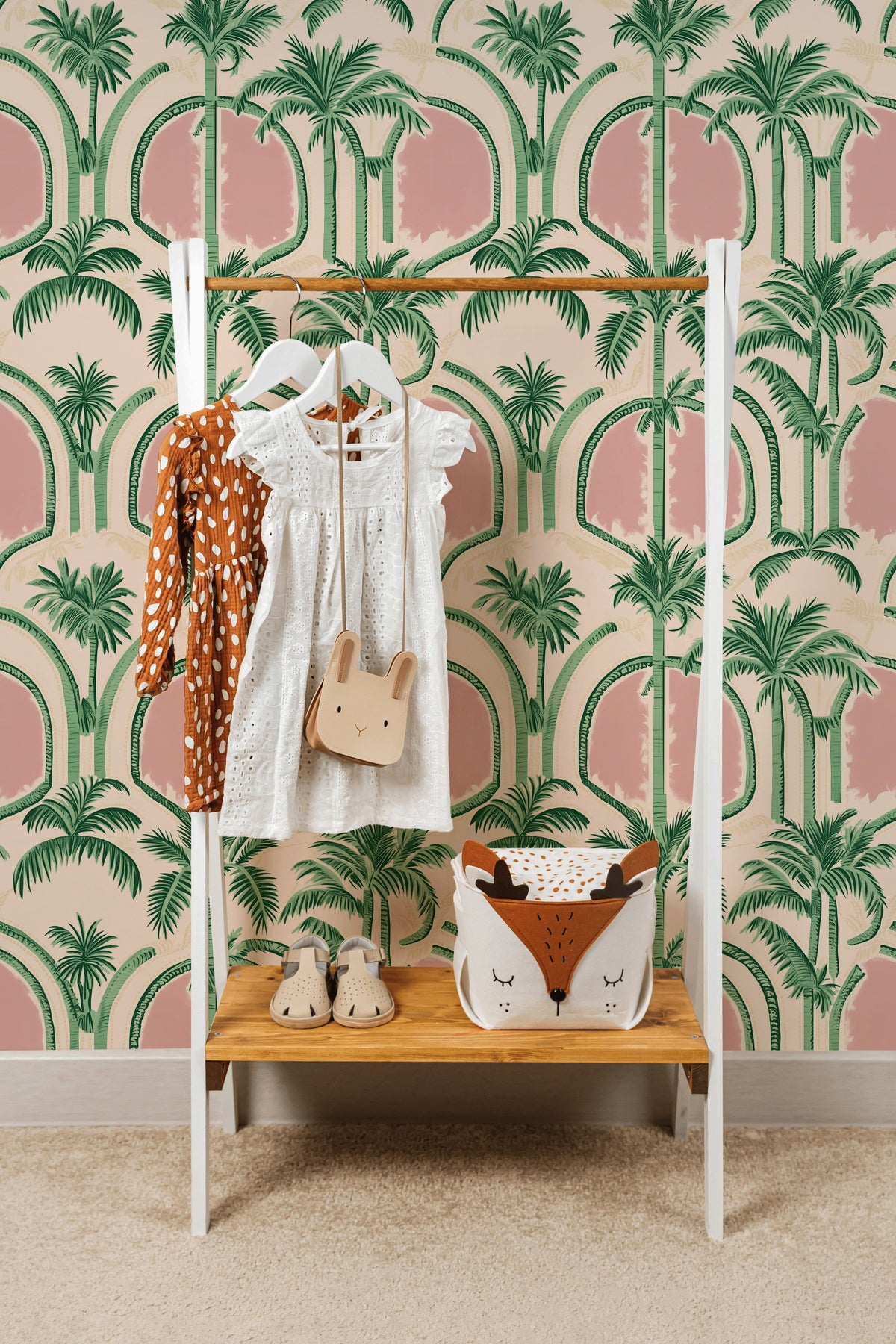 Is the Soft Pink Art Deco Palm Tree Wallpaper suitable for a kid's room?
